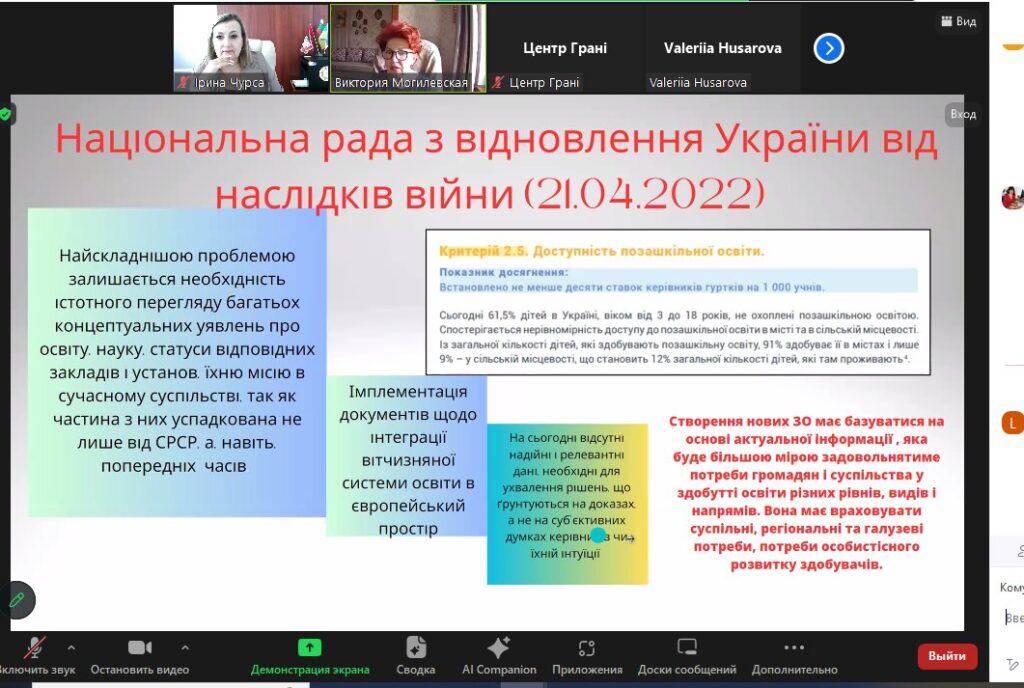 1 травня 2025 року відбувся змістовний діалог членів Правління Міжнародної асоціації позашкільної освіти на чолі з президентом Oленою Биковською МАПО та освітнім омбудсменом Надією Лещик.