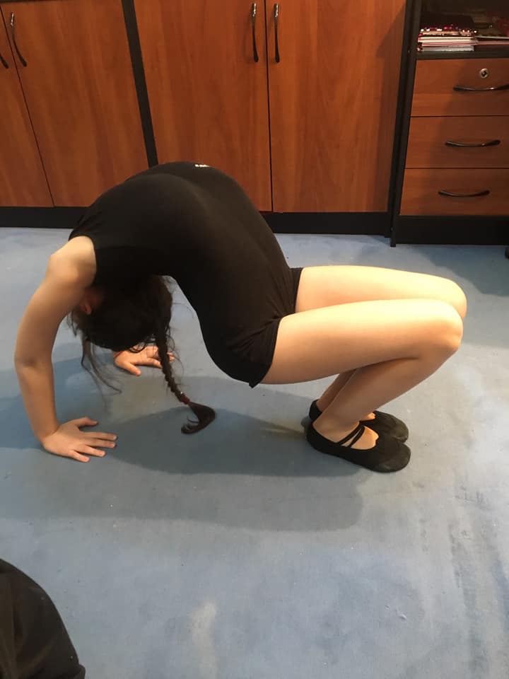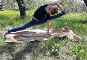 Вихованці «Народного художнього колективу» циркової студії «Едельвейс», керівники — Бабенко О.В., Непомняща С.А., виконують вправи на вдосконалення гнучкості, вправи лобового шпагату та вправи на розтяг м`язів.