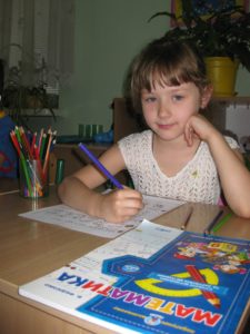 На заняттях з математики діти набувають необхідні базові знання: засвоєння числового ряду, складу чисел, здобувають уяву про задачу, вміння: рахувати і обчислювати в межах 20, виділяти частини задачі, рішати та складати задачі, знайомляться з геометричним матеріалом.