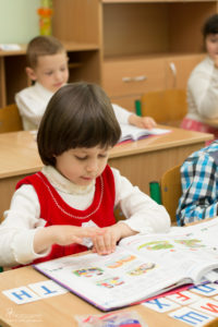 Діти вчаться орієнтуватися на сторінці зошита: зліва, справа, знизу, над лінією, між лініями; правильно тримати олівець, ручку; писати спочатку елементи букв, потім малі і великі букви та поєднувати букви у склади, слова.