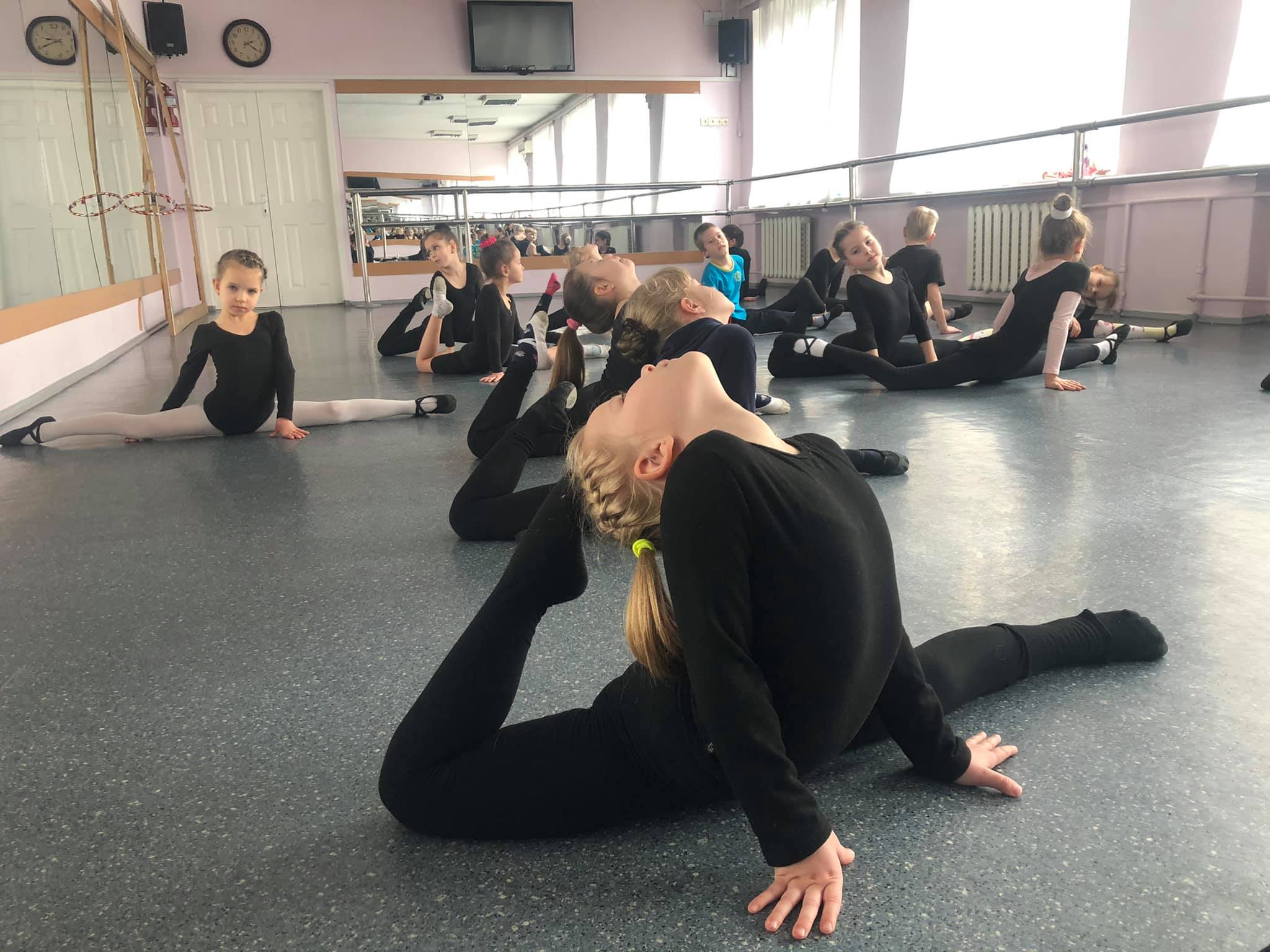 Вихованці 2-го року навчання початкової̈ студії хореографічної̈ підготовки «Народного художнього колективу» хореографічного ансамблю «Перлина», педагог – Аксентьєва Т.О., на занятті виконували вправи на розтяжку, акробатичні вправи та танцювальні треки.