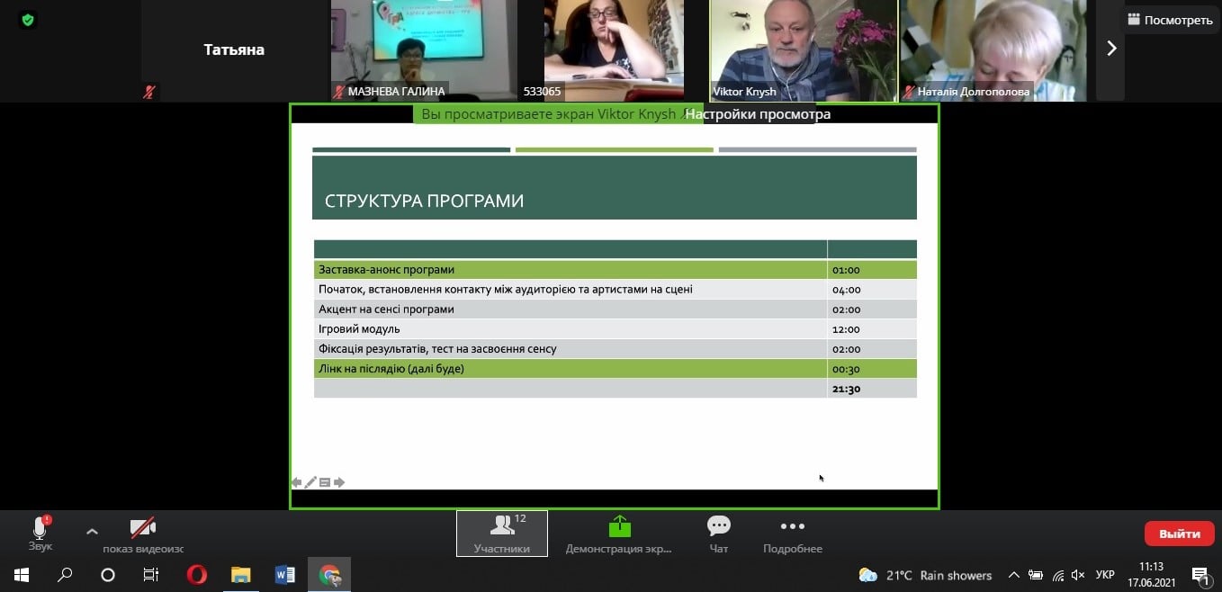 Метою онлайн-зустрічі було обговорення загальних правил конкурсу ігрових програм та технічних параметрів програми; знайомство з кураторами ігрових програм.