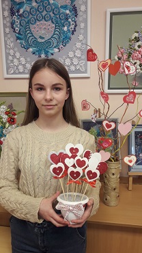 Вихованці «Зразкового художнього колективу» студії декоративних квітів «Троянда», керівник – Ірина Солдатова, виготовили гарні роботи до свята. День Святого Валентина – це не лише свято квітів, листівок та подарунків. Це символічний день для вияву трішки більшої уваги та любові тим людям, які перебувають поруч з вами. Вихованці студії вітають всіх з Днем закоханих і бажаємо, щоб такі ніжні почуття, як любов та закоханість, завжди панували у Вашому серці!
