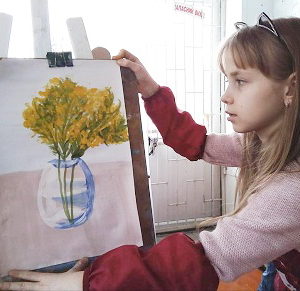 Вихованці «Народного художнього колективу» студії образотворчого мистецтва «Дивосвіт», керівник – Стринадкіна С.О., на занятті малювали квіти та вітали дівчат з 8 Березня.