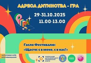 Друзі! Рівно за тиждень стартує Всеукраїнський відкритий фестиваль-майстерня «Адреса дитинства – Гра»! Фішкою фестивалю цього року стане онлайн-гра «Ігри щасливих» — інтерактивне відео-змагання для тінейджерів з 9 міст України. На учасників чекають творчі, інтелектуальні та командні випробування, що перевіряють кмітливість, уяву та почуття гумору. Гра проходитиме у режимі онлайн, у прямій взаємодії з глядачами, бо саме вони голосуватимуть, пропонуватимуть завдання й впливатимуть на рейтинг команд! Переможцем стане команда, яка збере найбільшу кількість балів і підкорить серця глядачів. Плануйте свій час і приєднуйтесь до наших ефірів на YouTube-каналі «Адреса дитинства – Гра!». Не пропустіть головну подію осені, де грають, мріють і